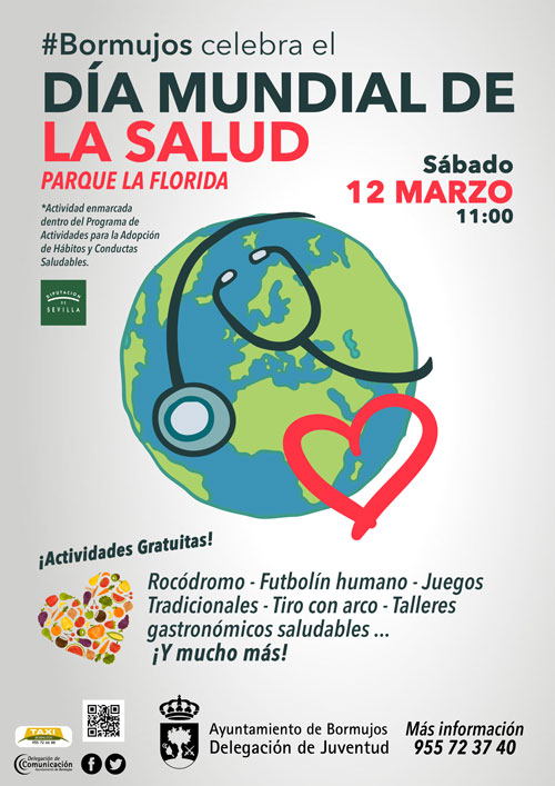 Descargar pdf Del 12 al 12 de marzo de 2016 Celebración Día Mundial de la Salud. Descargar pdf Información del evento Lugar: Parque La Florida. 11:00. Inicio: 12 de marzo de 2016 Finalización: 12 de marzo de 2016