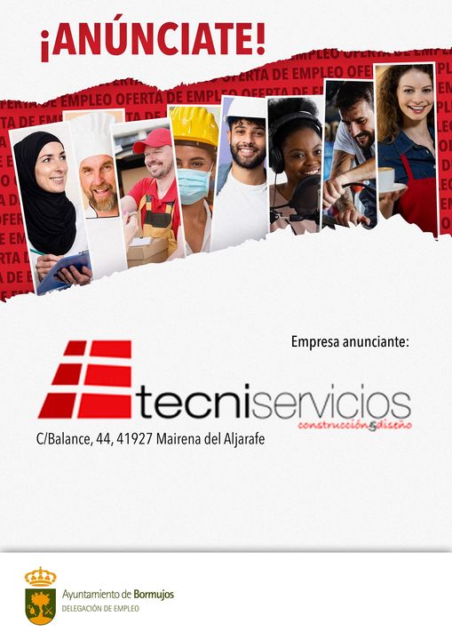 La Delegación de Empleo, a cargo de Jeronimo Heredia Pozo informa de que se han recibido varias ofertas de trabajo de la empresa TECNISERVICIOS MARQUEZ ESPAÑA S.L. ante el crecimiento de la entidad dedicada al mundo de la construcción desde 1991 y especializada tanto en instalaciones comerciales como en trabajos comunitarios, individuales e interiorismo, con un equipo de más de 30 profesionales.