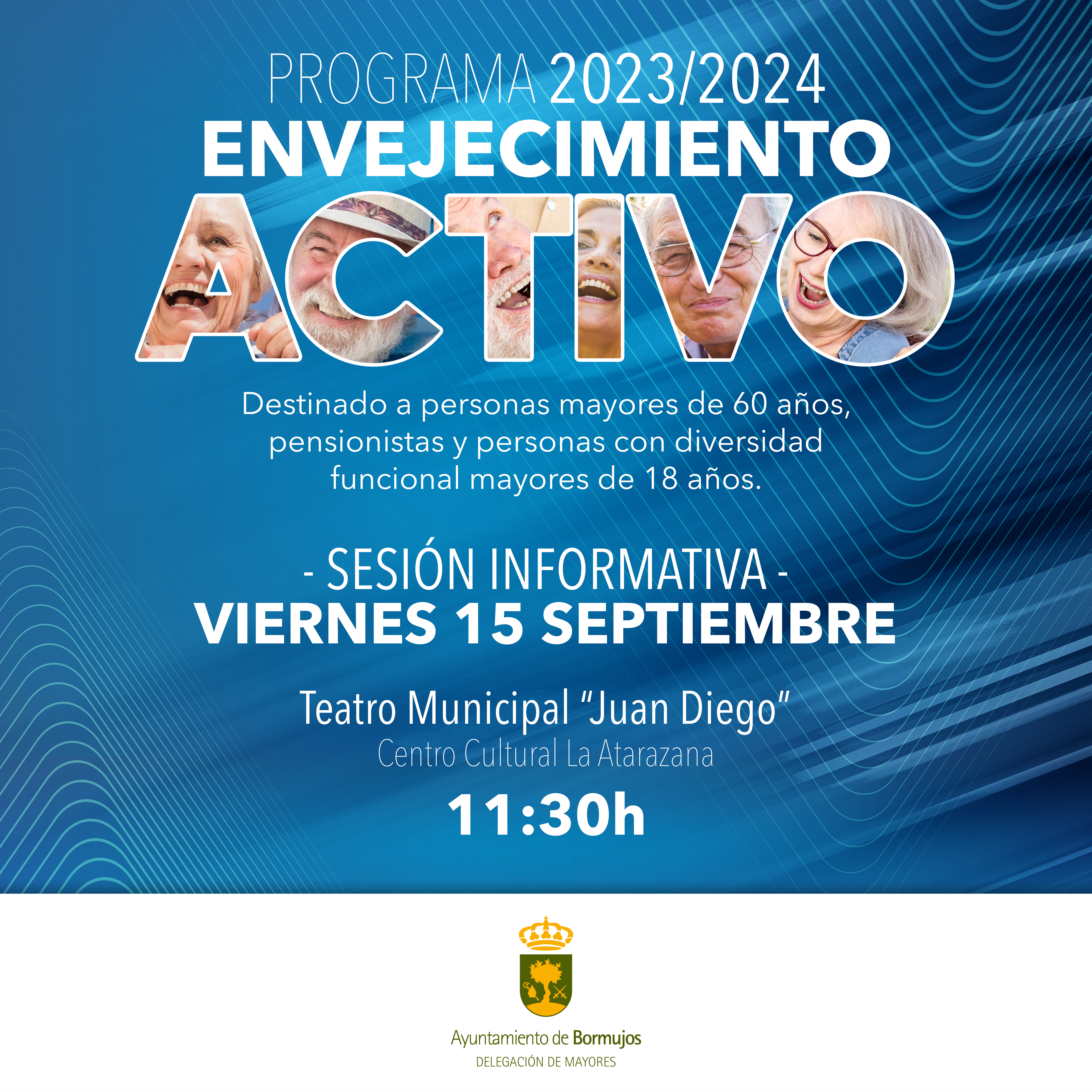 El próximo viernes 15 de septiembre celebraremos una sesión informativa para informar del programa de envejecimiento activo destinado a mayores de 60 años, pensionistas y personas con diversidad funcional mayores de 18 años.