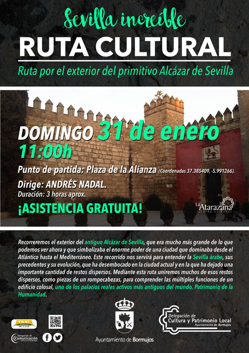 Descargar pdf Del 31 al 31 de enero de 2016 Ruta Cultural "Sevilla increíble" Descargar pdf Información del evento Lugar: Punto de salida: Plaza de la Alianza (Sevilla). 11.00 Inicio: 31 de enero de 2016 Finalización: 31 de enero de 2016