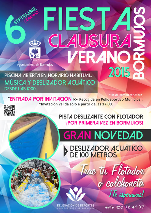 Desde la Delegación de Deportes se informa que este próximo Domingo 6 de Septiembre tendrá lugar en las instalaciones de la Piscina Municipal la Fiesta de clausura de la temporada de Verano. Será a partir de las 17:00, aunque la piscina permanecerá abierta en su horario habitual de 12:00 a 21:00.
