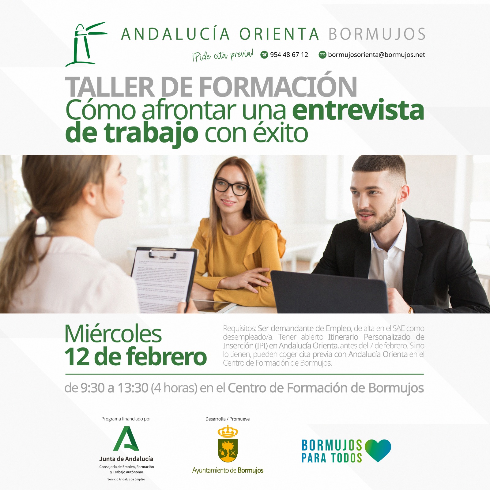 Desde Orienta Bormujos te damos las claves con un TALLER DE FORMACIÓN 'Cómo afrontar una entrevista de trabajo con éxito', cómo prepararla, el autoconocimiento, las posibles preguntas, etc