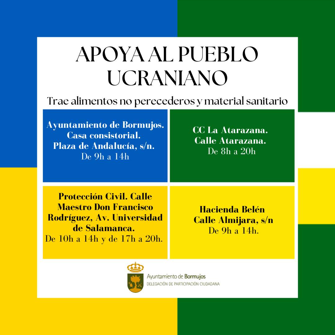 Bormujos organiza la Campaña Solidaria de Ayuda al Pueblo Ucraniano residente en el municipio con puntos de recogida de productos de primera necesidad