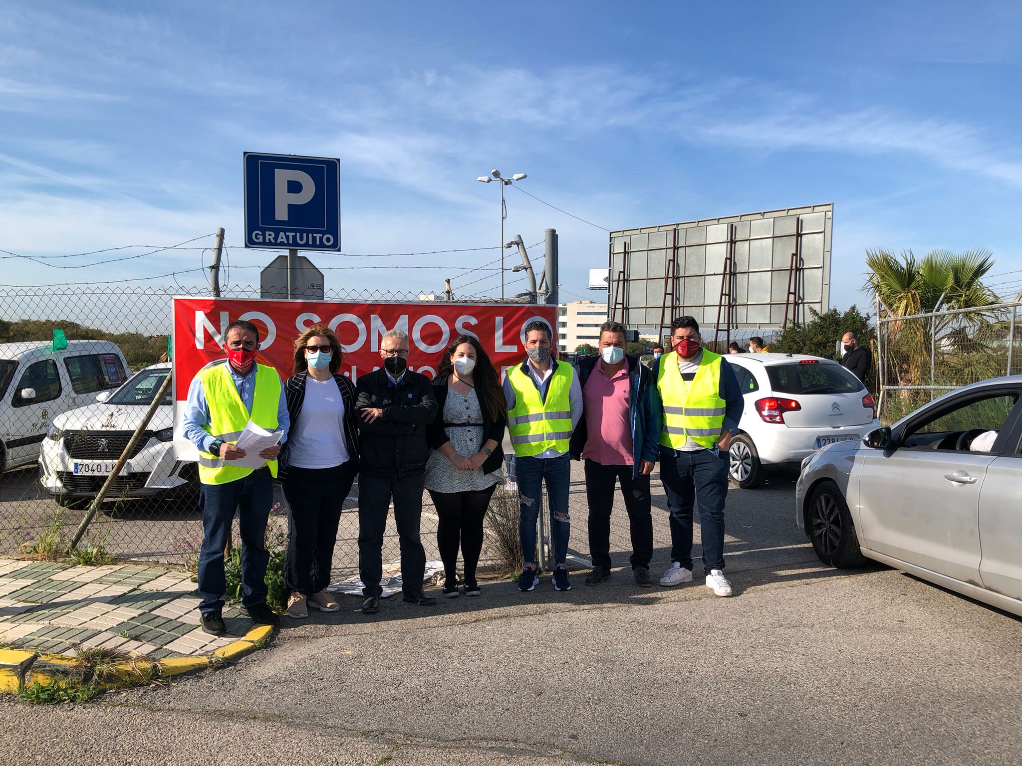 Los comerciantes y empresarios se han reunido en el parking del megaocio para unirse en caravana de coches a la autovía A-49 y dirigirse hasta Sevilla, donde los representantes del sector de Distrito Sevilla Sur se han manifestado hasta la Plaza Nueva.