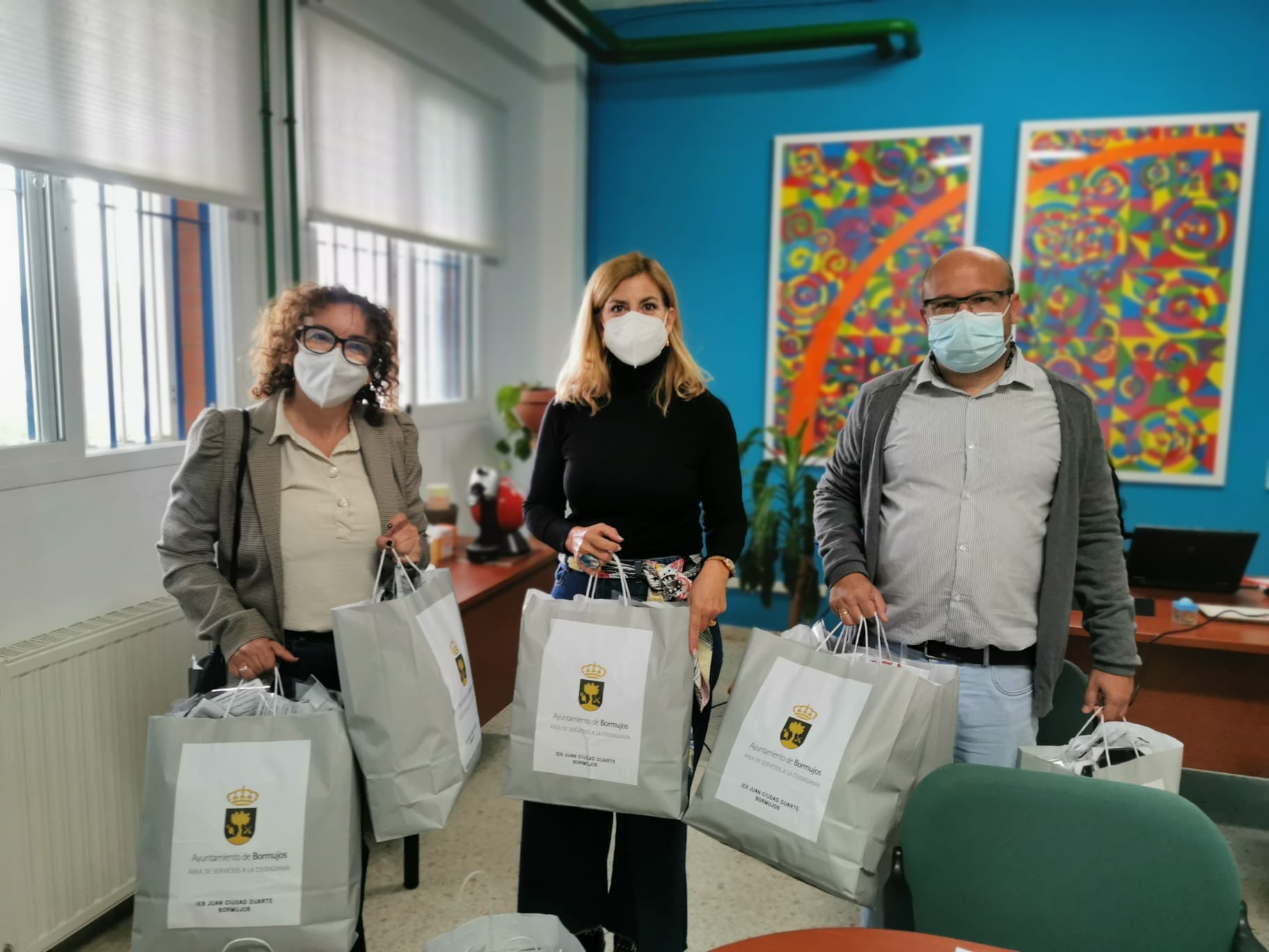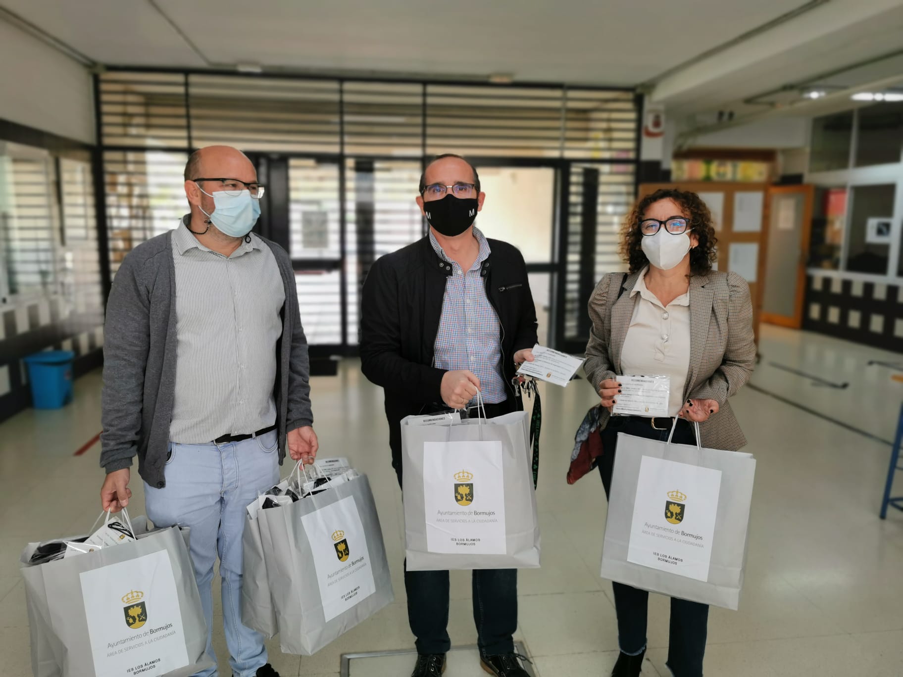 Con esta entrega, el Ayuntamiento de Bormujos completa toda la población estudiantil de Bormujos, después de que una vez iniciados los colegios se facilitaran también al alumnado de primaria 5.000 mascarillas infantiles.