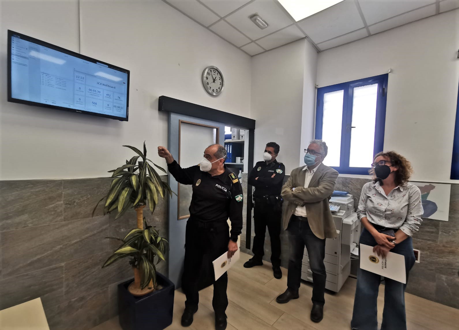 Gracias a la Delegación de E-Administración y el departamento informático se han renovado las instalaciones mediante la colocación de pantallas que facilitarán un sistemas de comunicaciones unificadas en el que los agentes puedan dar a acceso desde la Jefatura a los edificios municipales. También ofrecerán atención a la ciudadanía, mediante videoconferencia, en caso de encontrarse en la calle patrullando y no estar presentes en el edificio.