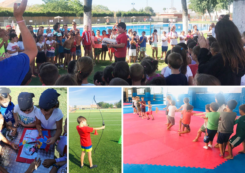 Actividades como las olimpiadas deportivas, la gymkana, los talleres tematizados, los juegos tradicionales, el tiro con arco, los bailes de verano, las competiciones de piscina, la fiesta del agua, etc., hacen que los días de verano sean de pura diversión y alegría para las niñas y niños que participan en esta edición 2019 del Campus Deportivo de Conciliación.