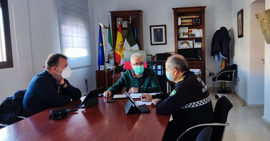 El alcalde de Bormujos, Francisco Molina, ha mantenido un encuentro con el jefe de la Policía Local, Diego Gaviño y el coordinador de Protección Civil, Emilio Simón, para analizar las intervenciones realizadas y sus resultados.