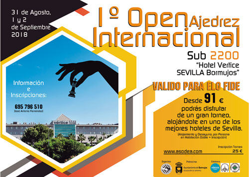 Si quieres disfrutar de un fantástico fin de semana de Ajedrez en Sevilla, ¡Esta es tu oportunidad! Se celebrará del 31 de Agosto al 2 de Septiembre, en el Hotel Vértice**** Sevilla Aljarafe. Toda la información en http://asodea.com/2018/05/24/21/